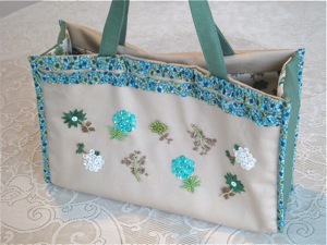 ビーズ刺繍をしています。バッグの内側には